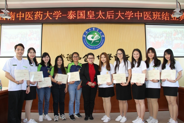 2020年19日,学校举行泰国皇太后大学中医班结业典礼。校党委副书记、校长熊磊出席活动并为10名“优秀留学生”颁发证书。