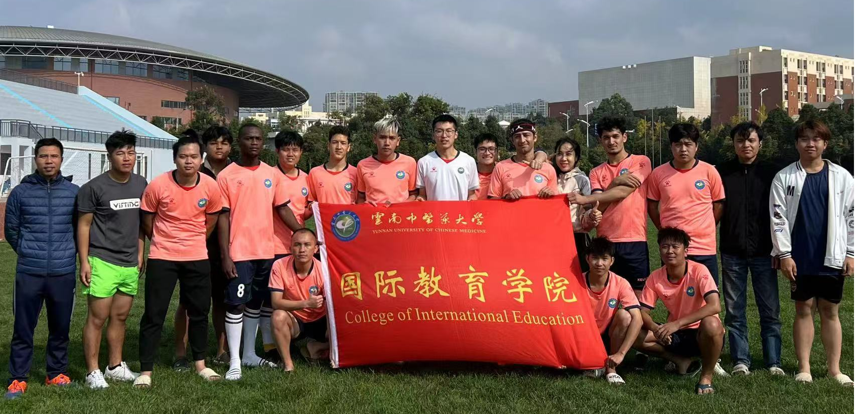 2024年10月13日,云南中医药大学“迎新杯”八人制足球比赛揭幕战在田径场打响。本次比赛历时14天,国际教育学院组织的13人留学生代表队历经4场小组循环积分赛,最终取得亚军的优秀成绩。